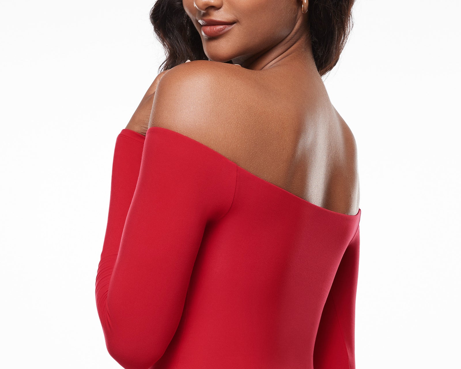 - Off-the-shoulder neckline creates a sexy and elegant look