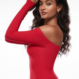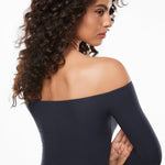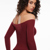 It is crafted from ultra-soft, stretchy fabric for a cozy fit. It features a flirty off-the-shoulder neckline, double-lined for coverage and warmth. The 4-way stretch and bodycon design provide a flattering fit, making it a versatile choice for any occasion.