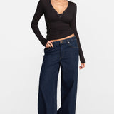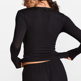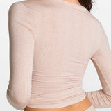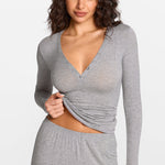 Modal Ribbed Long Sleeve Henley Plunge Shirt