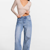 This fitted long-sleeve shirt is designed to feel like a second skin while subtly enhancing your curves. With its semi-sheer texture, deep V neckline, and refined snap-front details, it blends softness, stretch, and sensual elegance—perfect for lounging, layering, or effortless everyday wear.