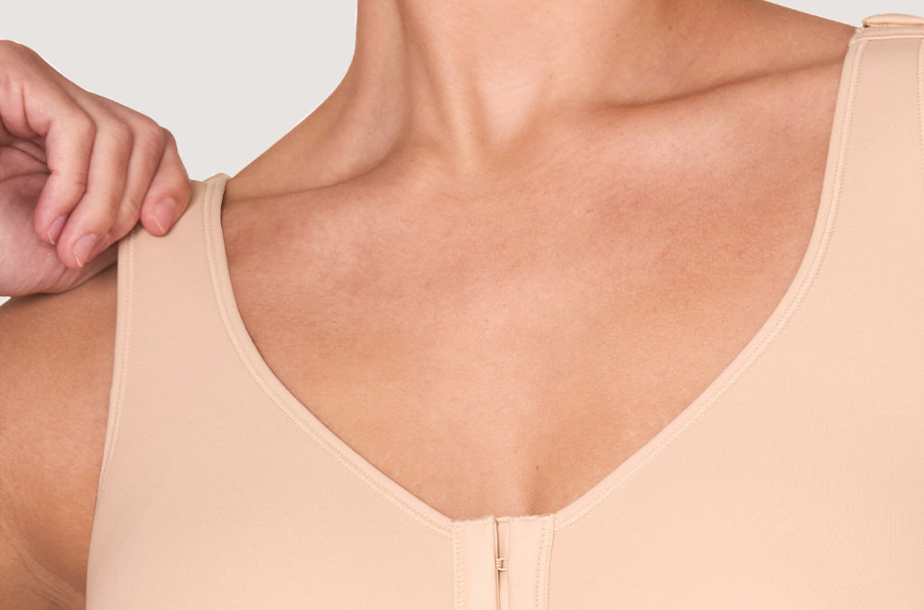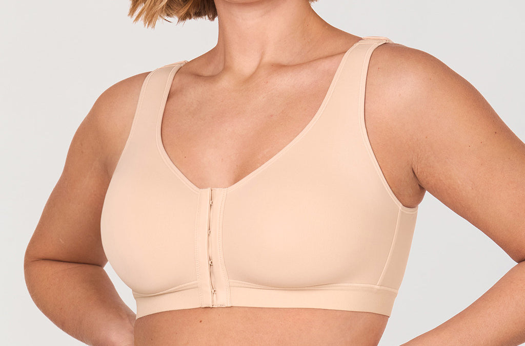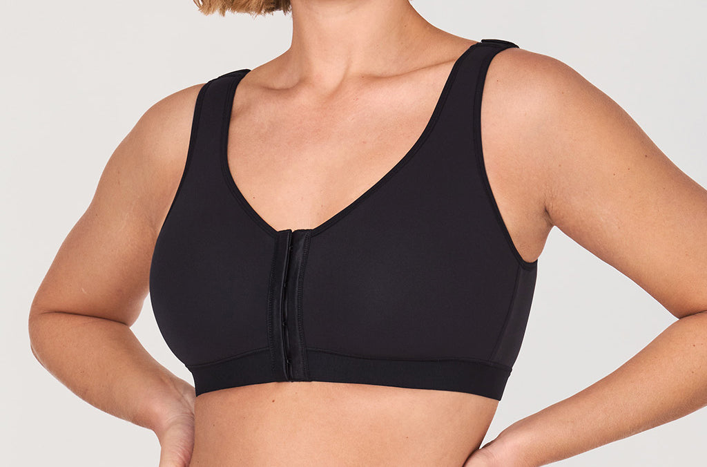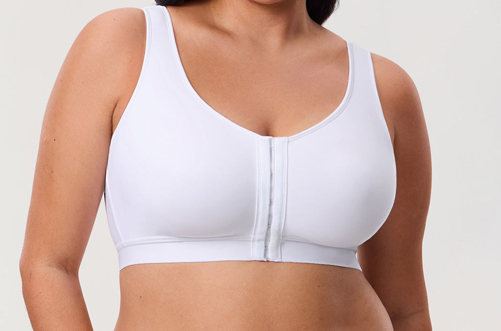 - Front-closure construction makes wearing and removing easy